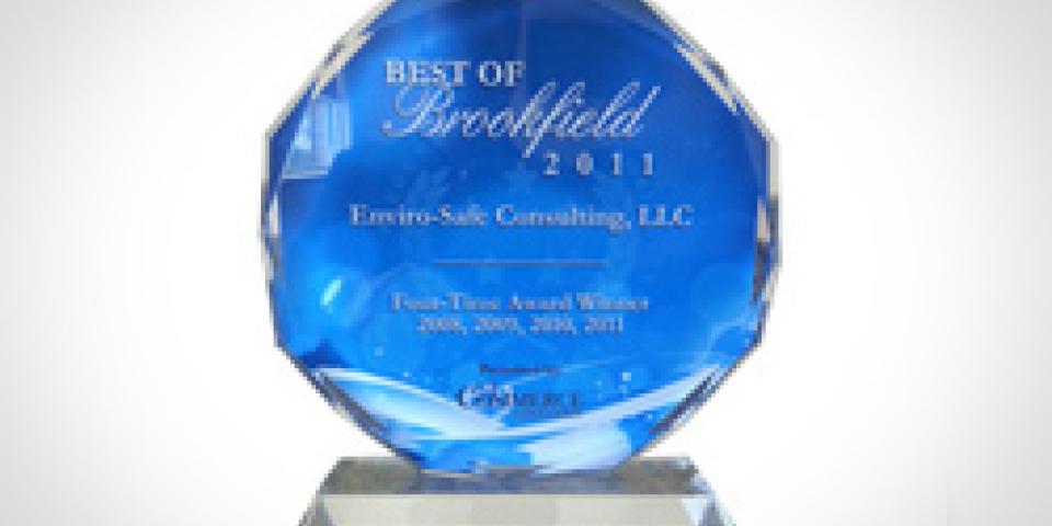 Enviro-Safe has been selected for the 2010 Best of Brookfield Award in the Environmental Consultants category by the U.S. Commerce Association (USCA). Enviro-Safe has now won this award three consecutive years.